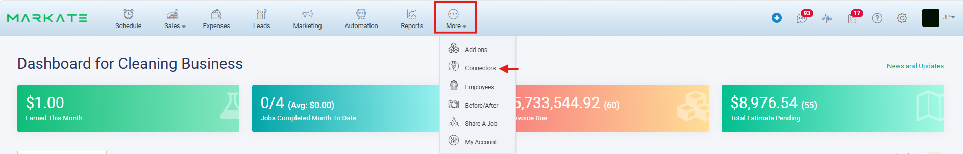 Once you are logged in to your Markate Account on web, Go to More > Connectors.