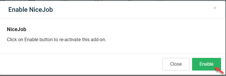 On Connectors page, go to NiceJob. Enable NiceJob by toggling to ON. You need to log-in to your NiceJob account to connect.