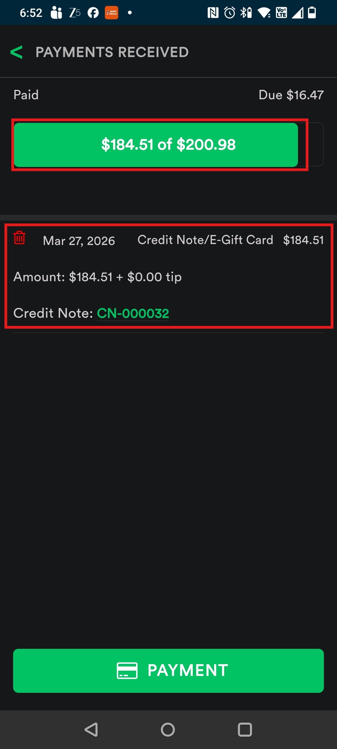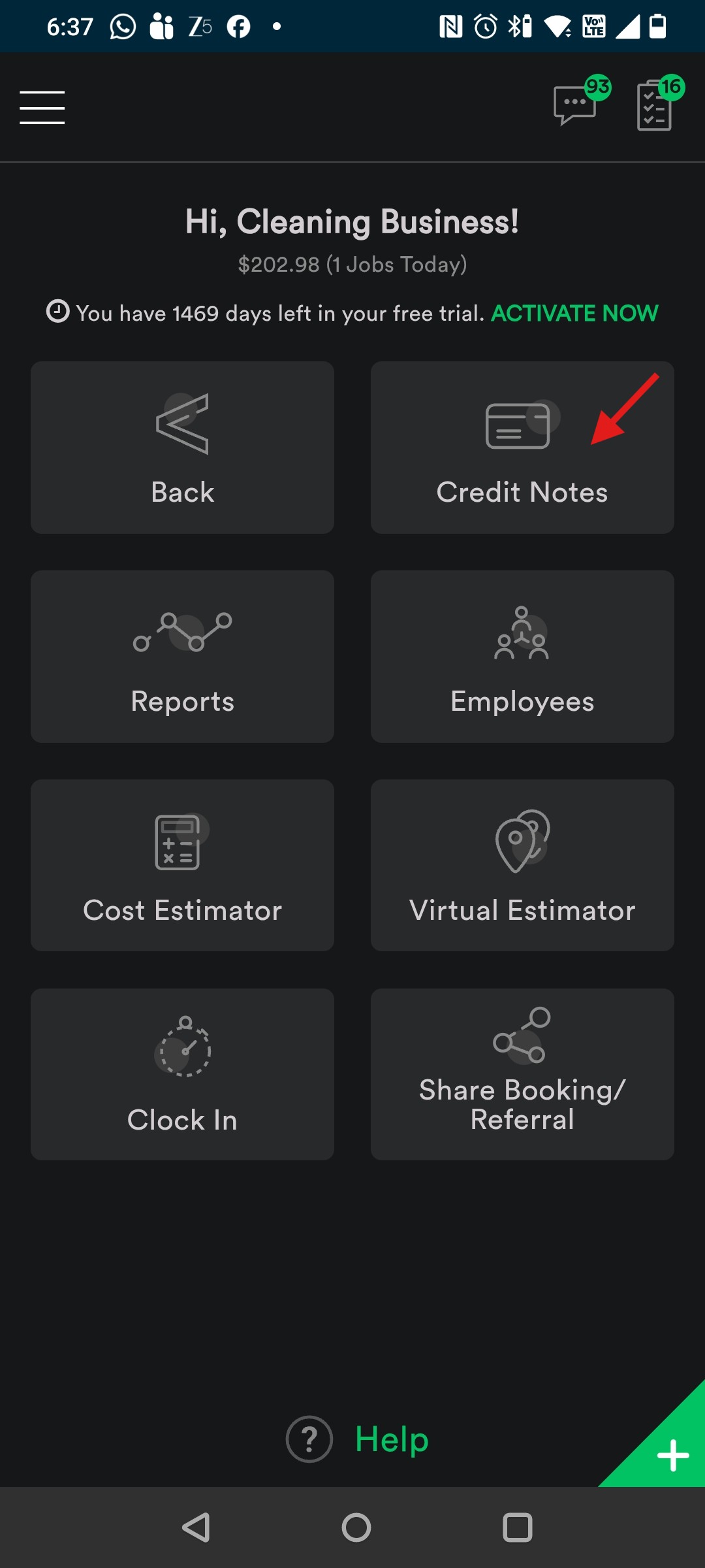 3. Tap on Credit Notes.