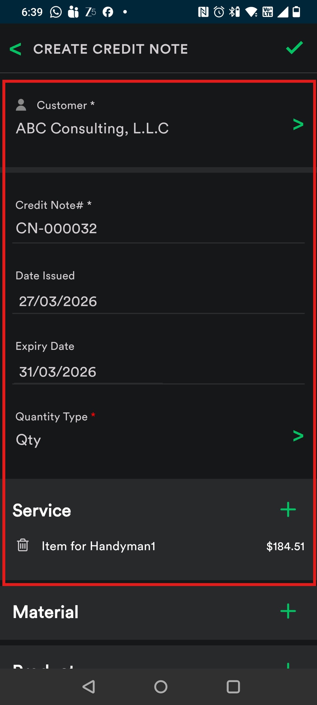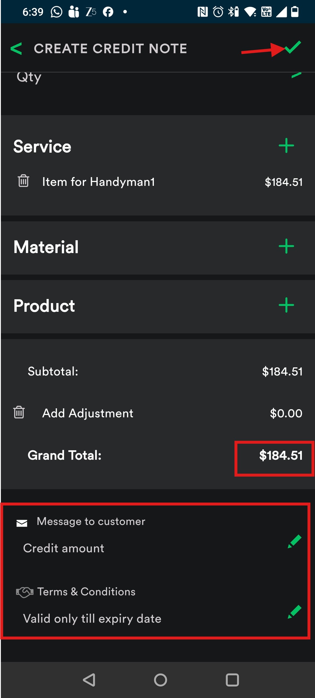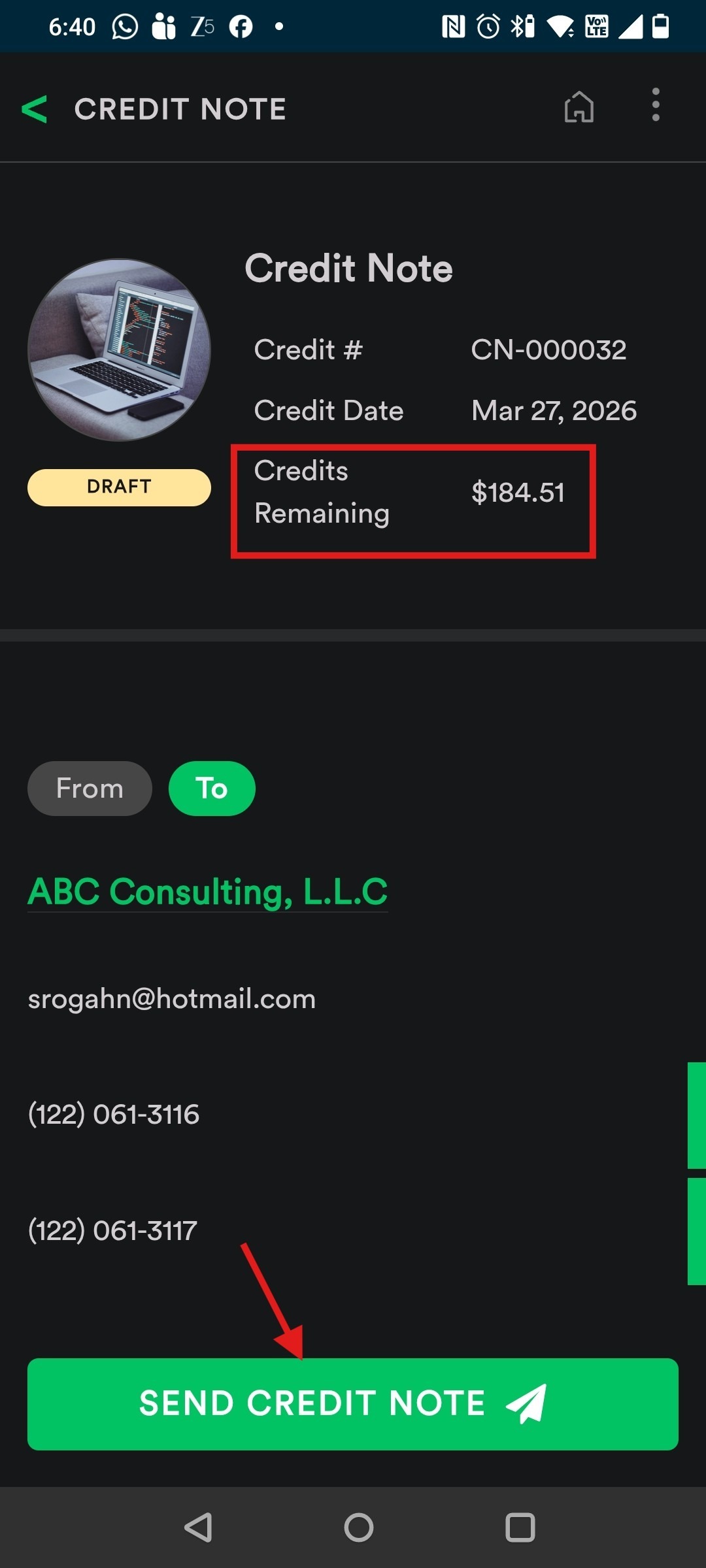 7. Open the draft and tap “Send Credit Note” to send it to your customer.
