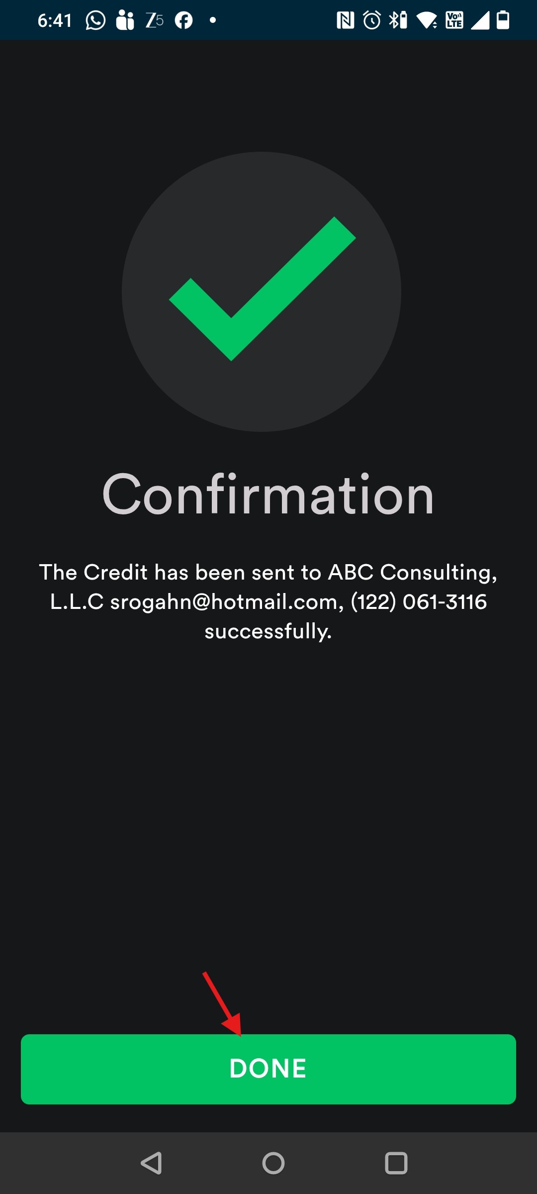 8. This is the Confirmation screen that the Credit Note has been sent to the Customer successfully.