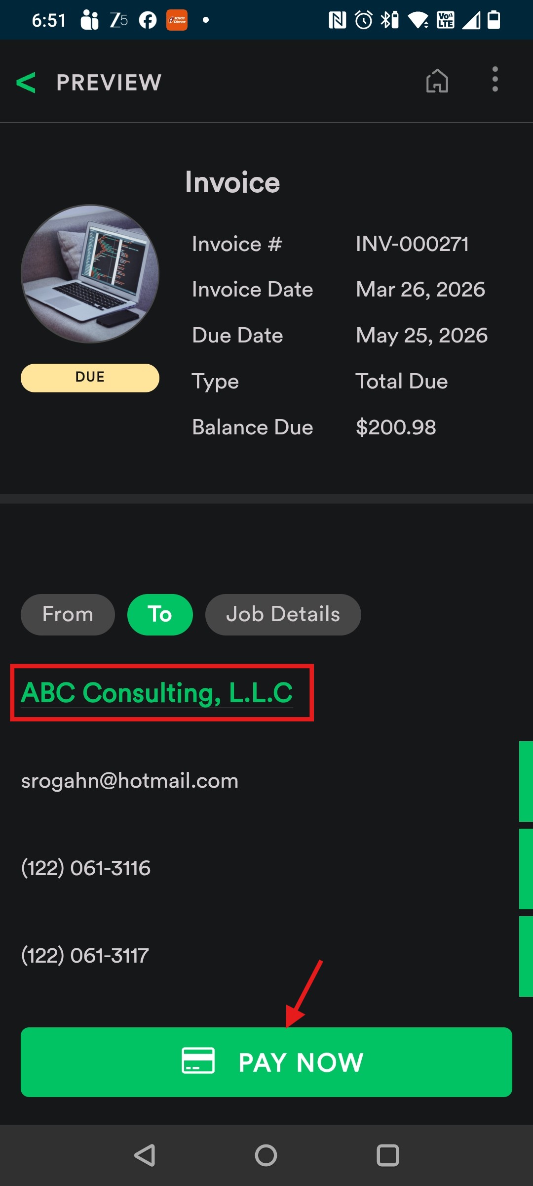 11. Tap the “Pay Now” button.
