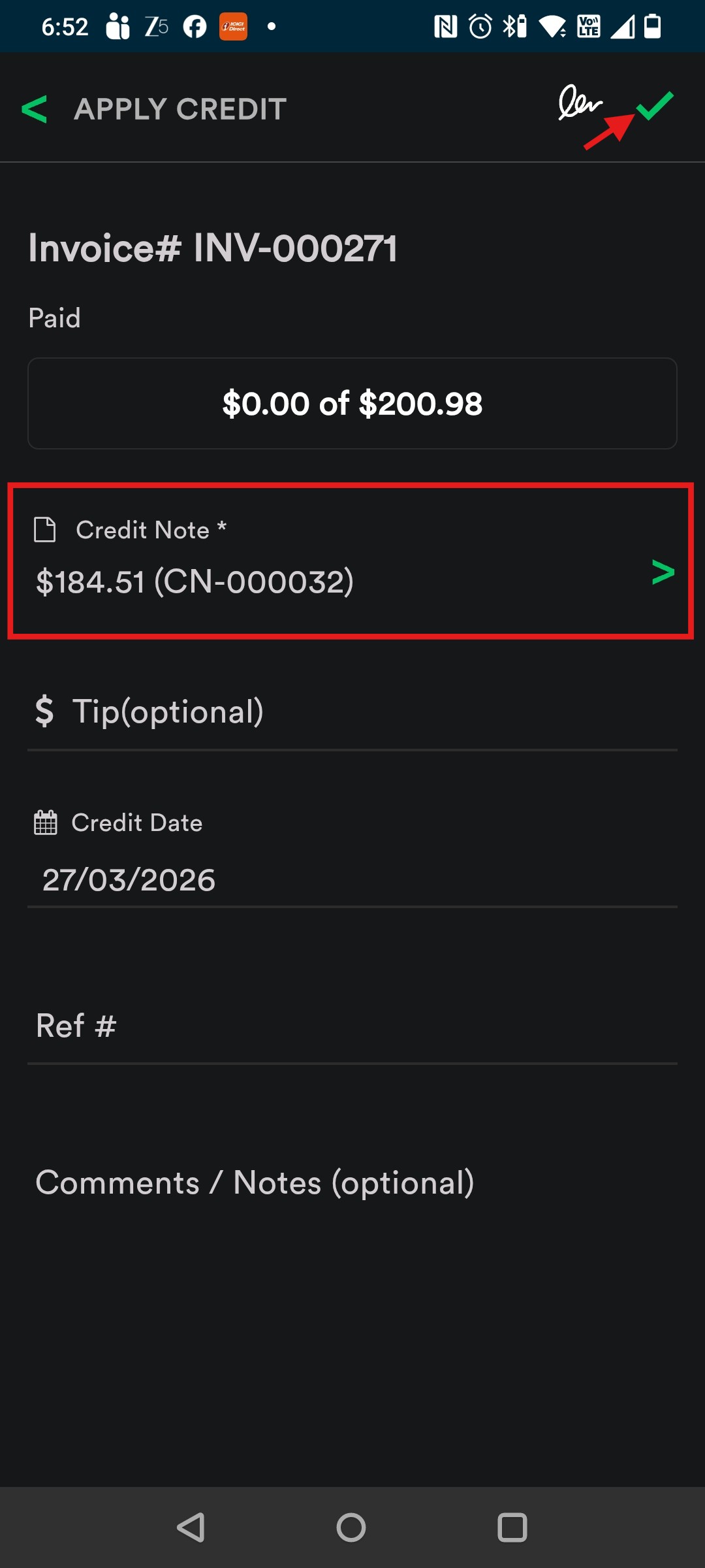 Step-by-step guide to create Credit Notes on the App: