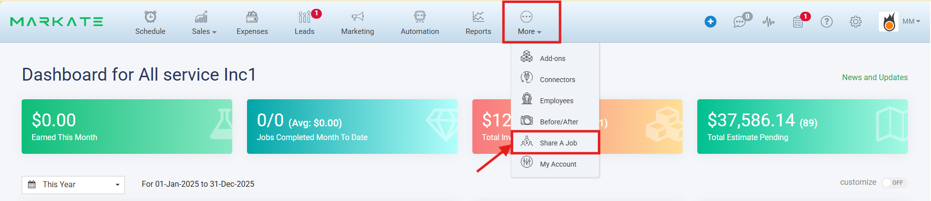 Step 2: Hover over More > Click 'Share A Job' from the More menu.
