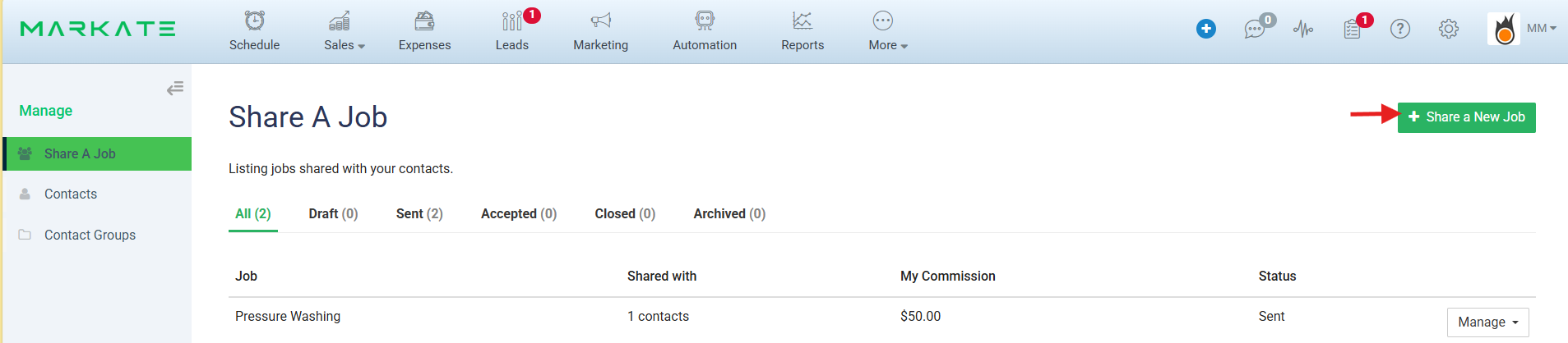 Step 3: On 'Share A Job' screen, click 'Share a New Job' button on top right.