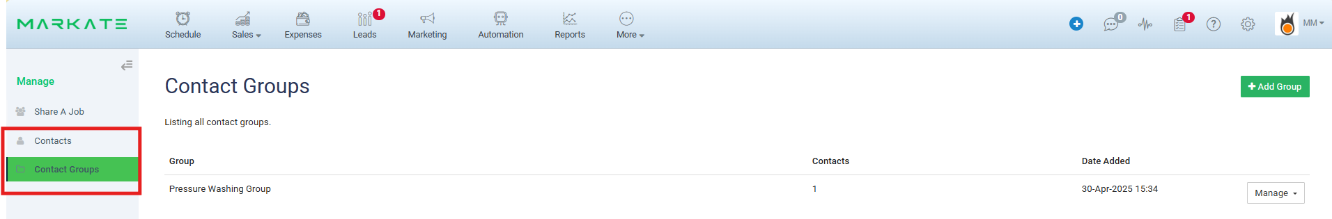 You can also select the Contact group with whom you want to share the job.