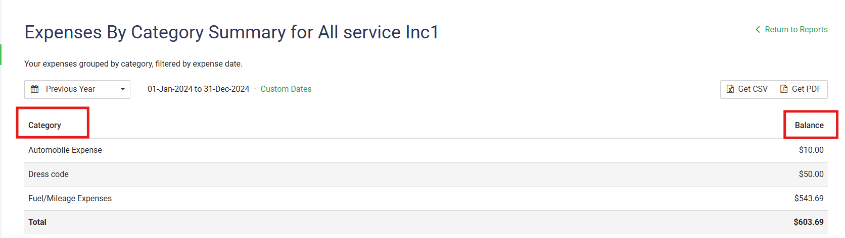 - Balance: Addition of all the Expenses made under the category (Automobile Expense) in this duration