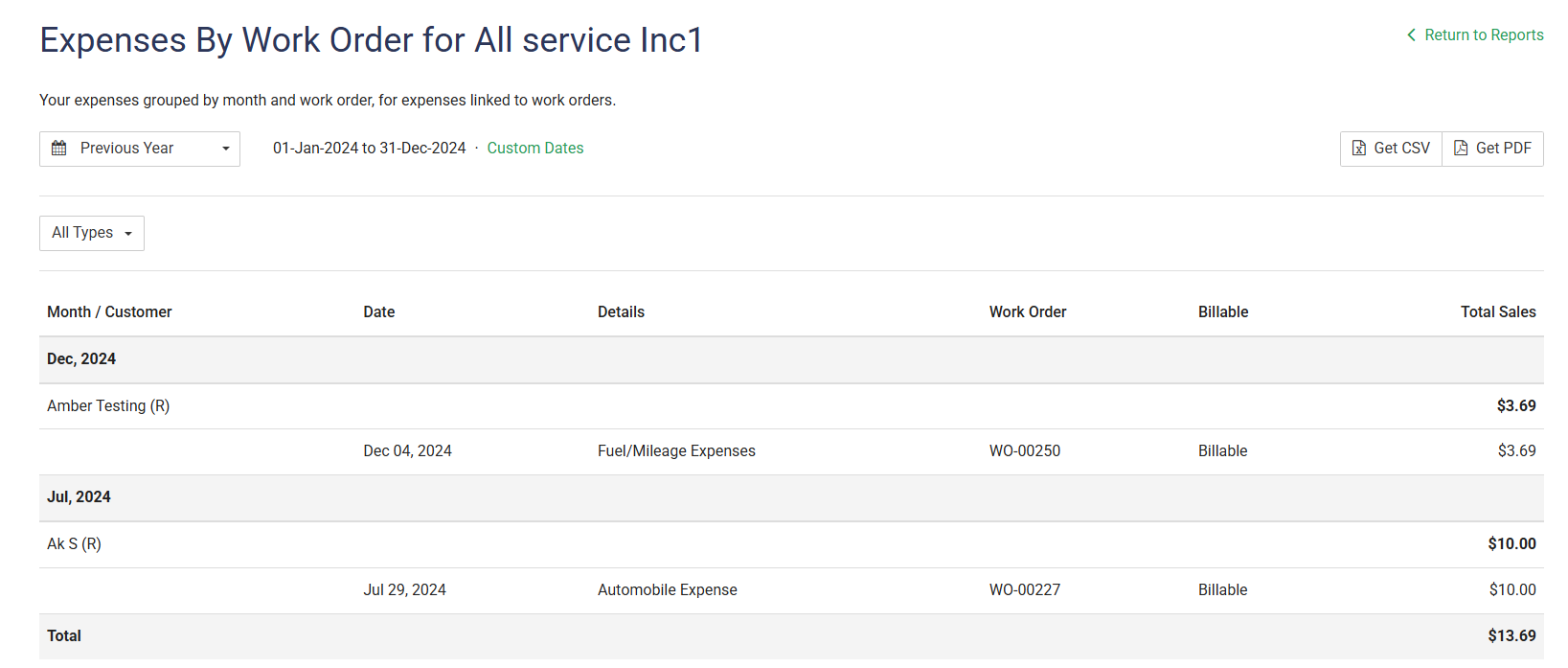 - Date: Date of the particular month when expense is made for the respective customer and Work Order is created