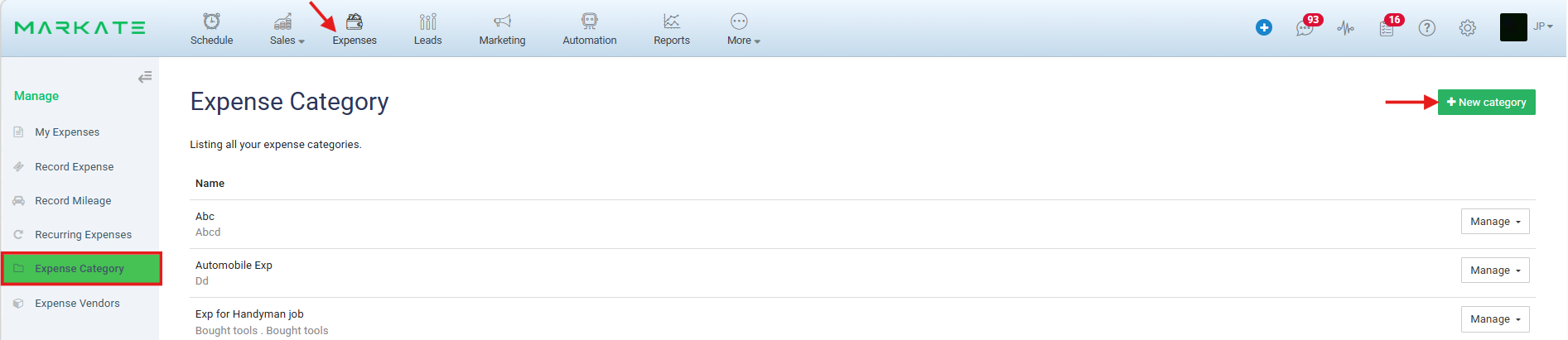 1. Go to Expense Category from left panel.