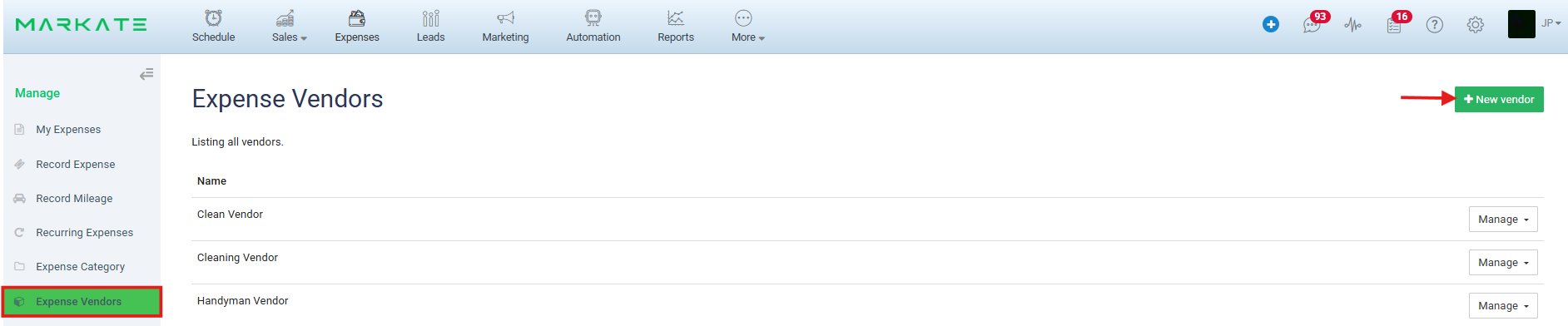 1. Click Expense Vendors from left panel.