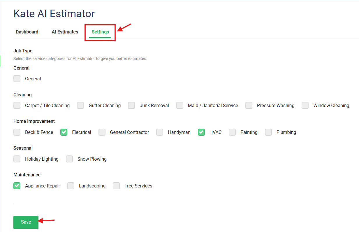 Kate AI Estimator estimates jobs in seconds. Just upload a photo or type/record a quick note about the job, and Kate AI Estimator instantly builds a professional estimate for you. It's the fastest way to get accurate prices to your customers and win more work without the headache.