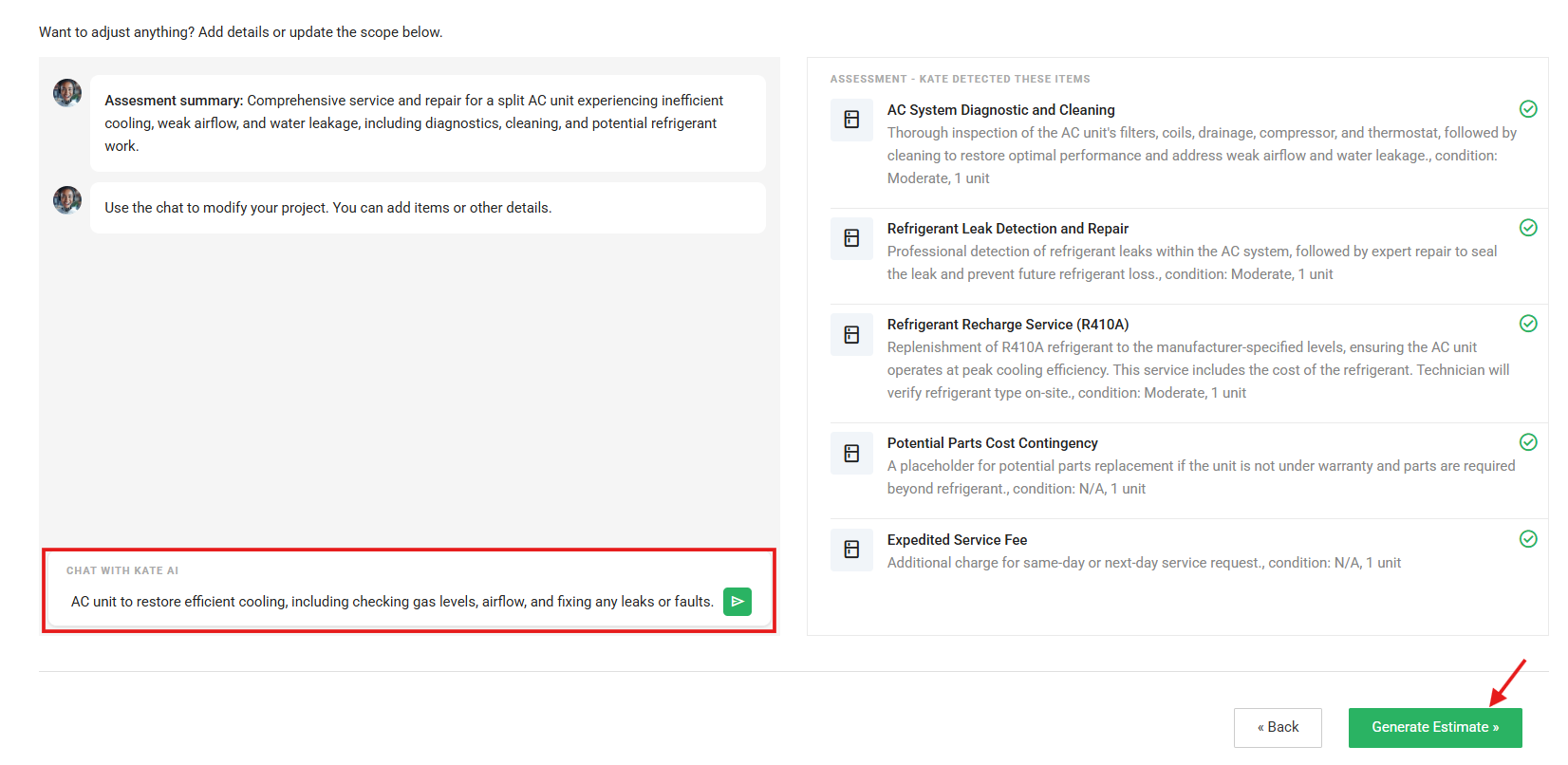 Step 17: Click 'Generate Estimate'.